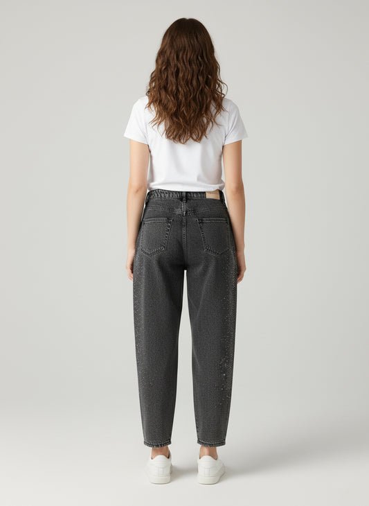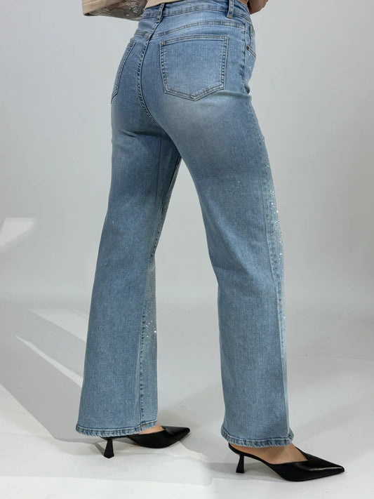 JEANS DENIM LAVAGGIO CHIARO CON STRASS