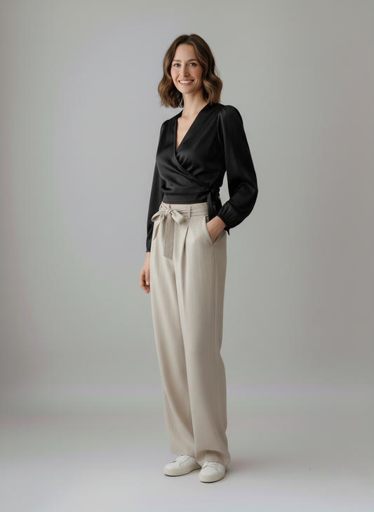TOP SCOLLO A V IN DOPPIO SATIN