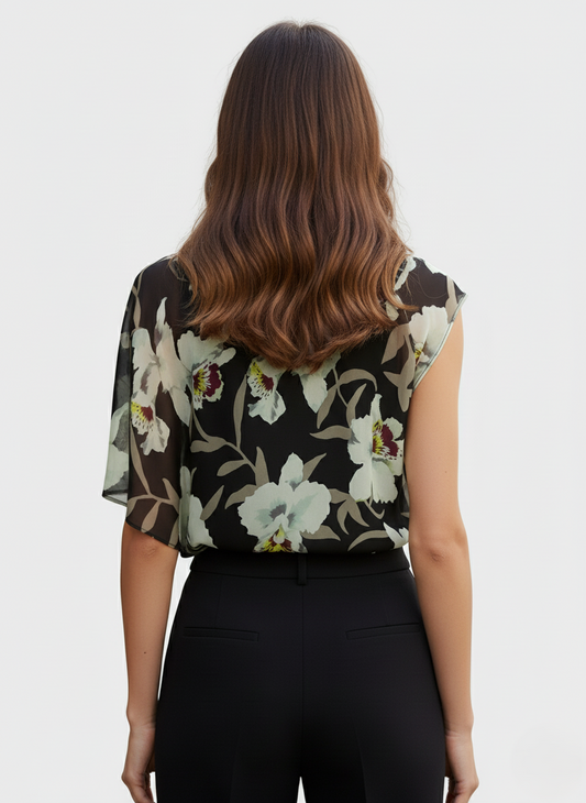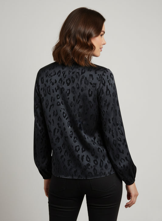 CAMICIA STAMPATA CON SCOLLO V IN CREPE DE CHINE