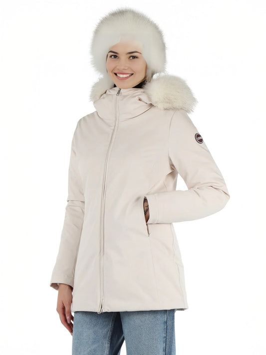 Cappa Colmar in piuma leggera con cappuccio