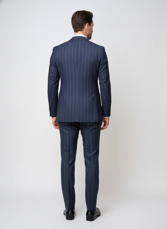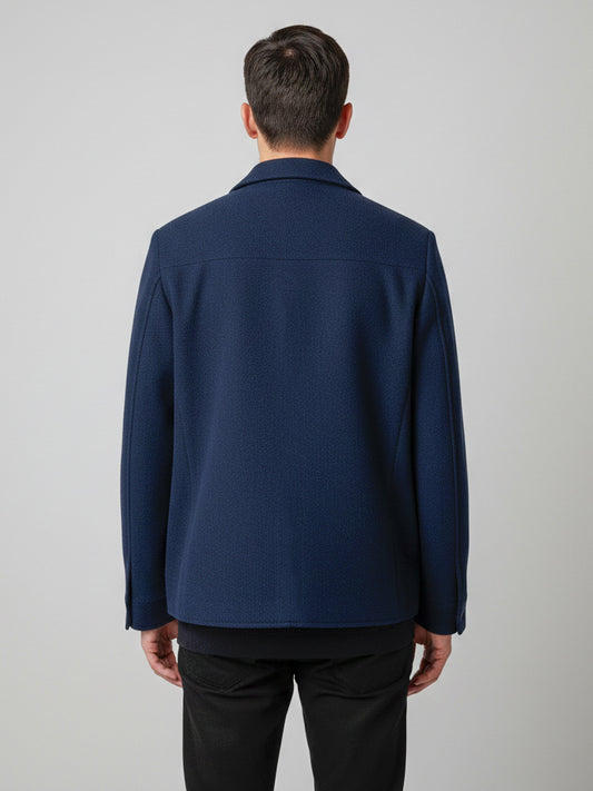 Cappotto Doppiopetto in Misto Lana Blu