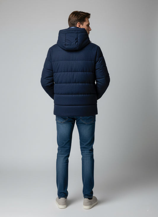 Giubbotto blu con cappuccio e piumino removibile. Hachiko People Of Shibuya