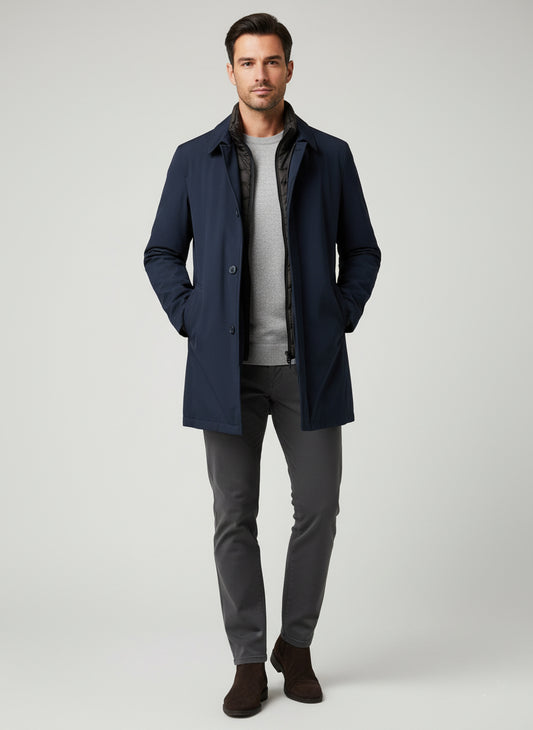 Soprabito Uomo con Gilet Interno Removibile - Tessuto Tecnico Blu Navy