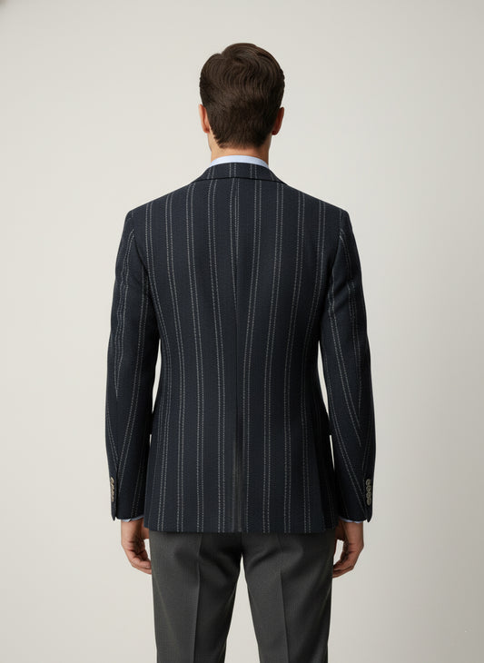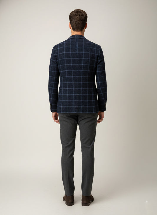 CALZE LUNGHE LISCE IN CALDO COTONE E CASHMERE BLU
