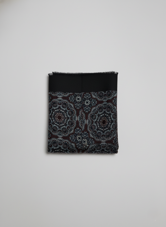 Sciarpa in Lana con Fantasia Floreale - Verde Scuro e Bordeaux