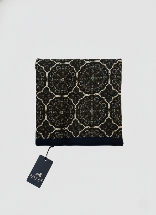 Pashmina 100% Lana Pura con Fantasia Geometrica Elegante-Moro