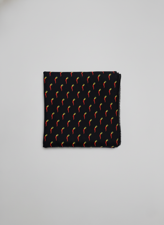 Pashmina 100% Lana Nera con Cornetti Portafortuna Rossi