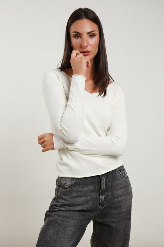 MAGLIA SCOLLO A V 250904CREMA