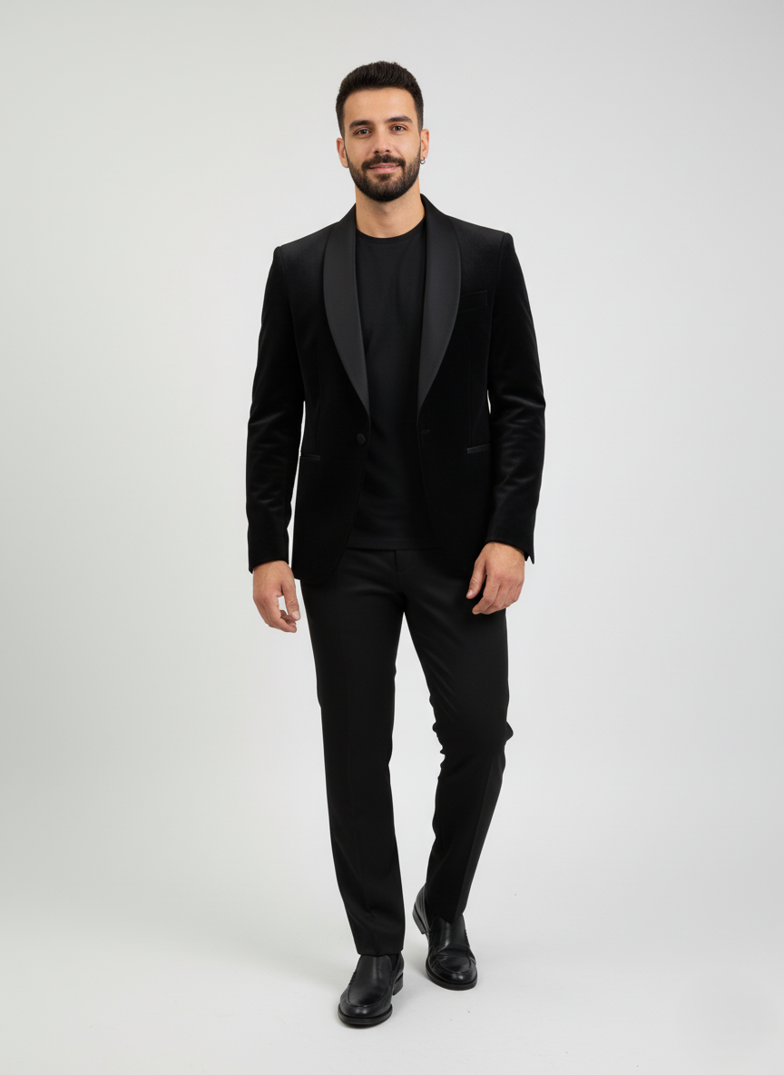Eleganza Inconfondibile: Lo Smoking in Velluto Nero