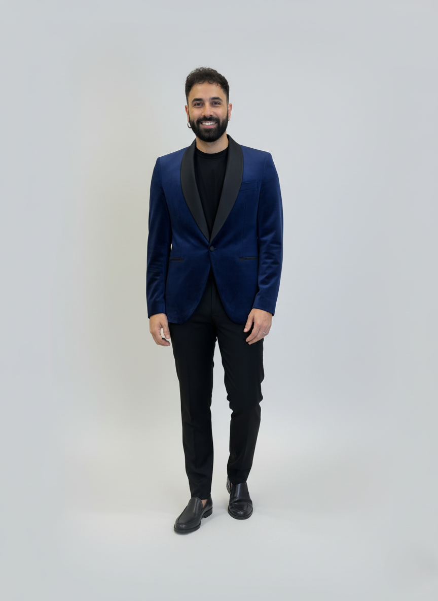 Preparati a lasciare un'impressione indelebile con il nostro esclusivo smoking in velluto royal, un capo che ridefinisce il concetto di eleganza serale. Perfetto per gli eventi più raffinati, dalle serate di gala ai matrimoni importanti, questo smoking è la scelta ideale per l'uomo che desidera distinguersi con classe e sofisticazione.