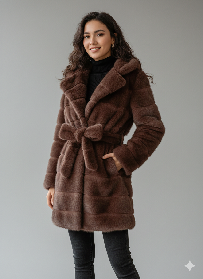 Giacca Pelliccia con cintura, manica lunga, vestibilità regolare.