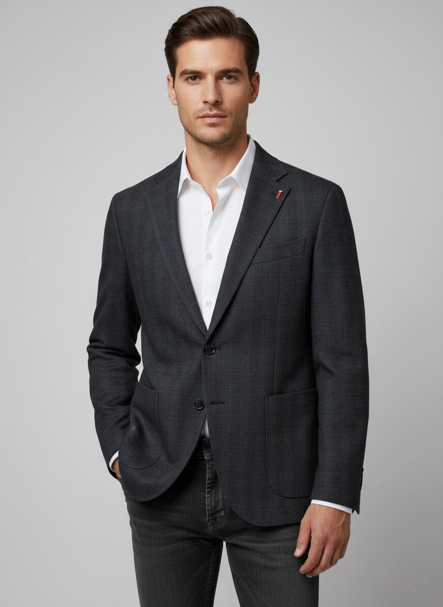 Giacca uomo Mulish modello a quadri realizzata in misto lana con spilletta, tasche a patta. Vestibilità slim fit. Il modello indossa la taglia 48 ed è alto 185 cm