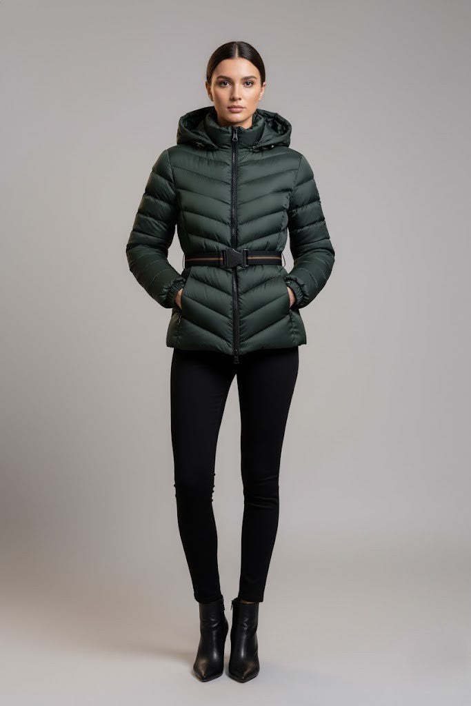 Piumino da donna dal look lucido e dalla struttura leggera, pensato per offrire calore e libertà di movimento fino a -10°C. Trapuntatura essenziale, zip frontale a spirale e tasche laterali con chiusura nascosta per un'estetica pulita e funzionale. Cappuccio staccabile, tasca interna porta-documenti e possibilità di aggiungere una cintura in vita per modularne la vestibilità. Un capo versatile, progettato per adattarsi al clima e allo stile di chi lo indossa - in città, in viaggio, ovunque.
